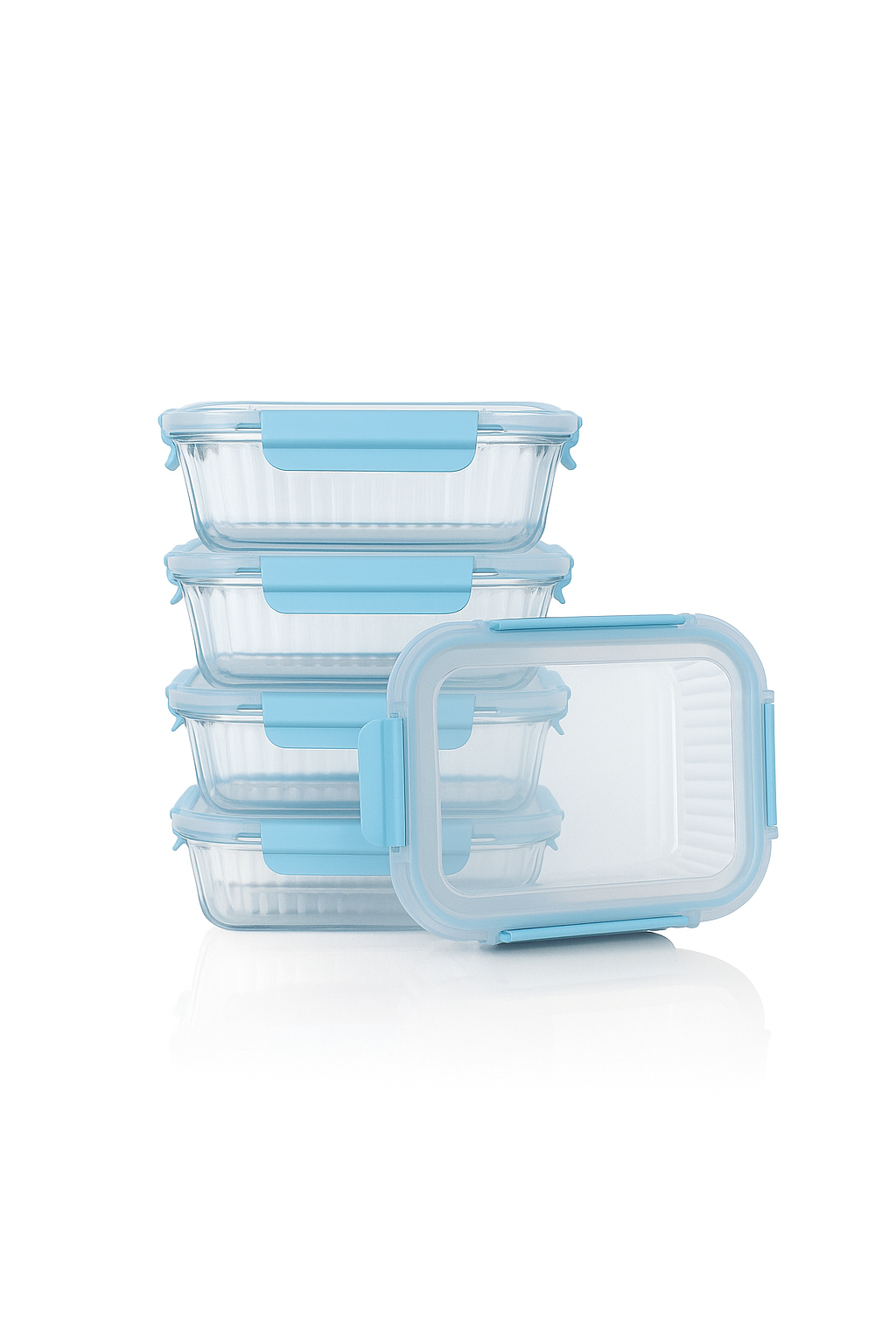 Sculpted Glass Food Storage Containers 5 Piece Set | Ceywa